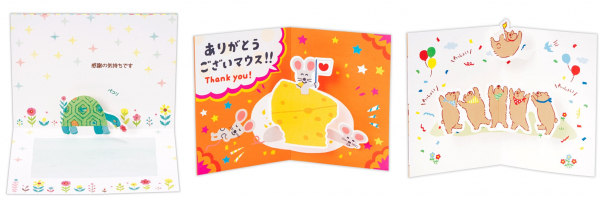 センチメントの内容とアートや立体を合わせたカードの開発に注力。お礼を伝えたいときのかしこまった気持ちや少し照れくさい気持ちを、可愛らしく贈れるデザインと機構を目指しました。