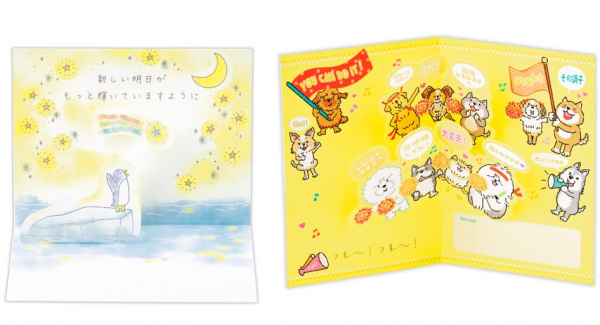 コロナ禍が明けて人々が集まる機会が増え、歓送迎会で対面でメッセージを贈る需要が高まっていることから「寄せ書きカード」を開発。色紙ほど大きいサイズではなく、6~8名がメッセージを書くのにちょうどいいサイズです。