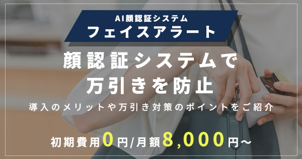 店舗で発生する万引きに備えた具体的な導入方法や、AI顔認証の仕組みをわかりやすく紹介しています。