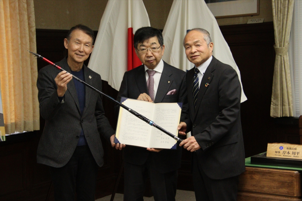 あやの台北部用地の正式調印第一号という事で橋本市としても大変うれしく思っております。橋本市の伝統工芸品に「竹竿」もありますので、ぜひ共に釣りの文化を長く守っていく活動が出来ればと思います。