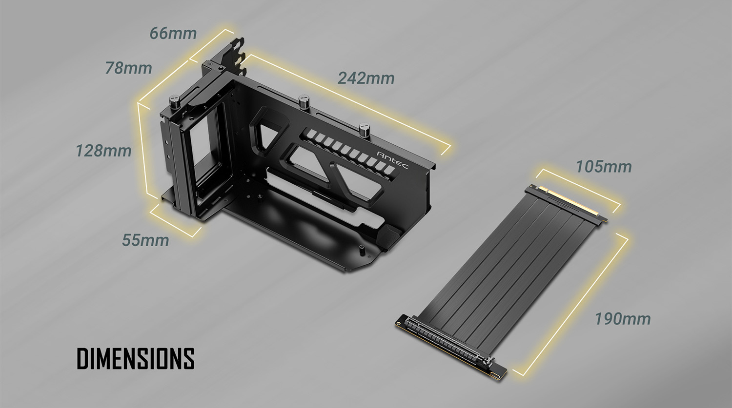 SHIFTは、Antec製PCケースに対応する可動式のグラフィックカード縦置きブラケットとライザーケーブルが一体になった製品です。最大3スロットのグラフィックカードを対応ケースのPCIeスロットにしっかりと固定し、ヒートシンクデザインやライティングを最大限に見せることができます。ライザーケーブル部分を左右に調整できる可動式ブラケットを搭載し、より多くのAntec製PCケースに対応します。PCIe 4.0接続、RTX 4090に対応し、ライザーケーブルは190 mm長を採用しています。ブラックとホワイトの2色をラインアップ。