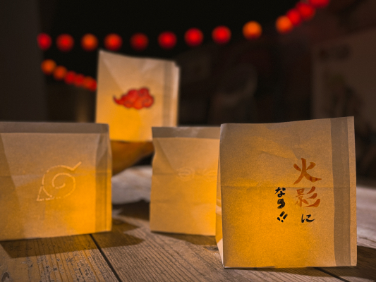 本企画は、当日ご来場いただいた方に、新年への願いを書き込んだイルミネーション提灯を「木ノ葉マーク」になるように設置いただき、スペシャルフォトスポットを作り上げる、来場者参加型のイルミネーションイベントです。アトラクション全体を無数の提灯で彩った忍の世界×和風のイマーシブイルミネーションとともに、2024年最後の夜を「NARUTO&BORUTO 忍里」で楽しみましょう!