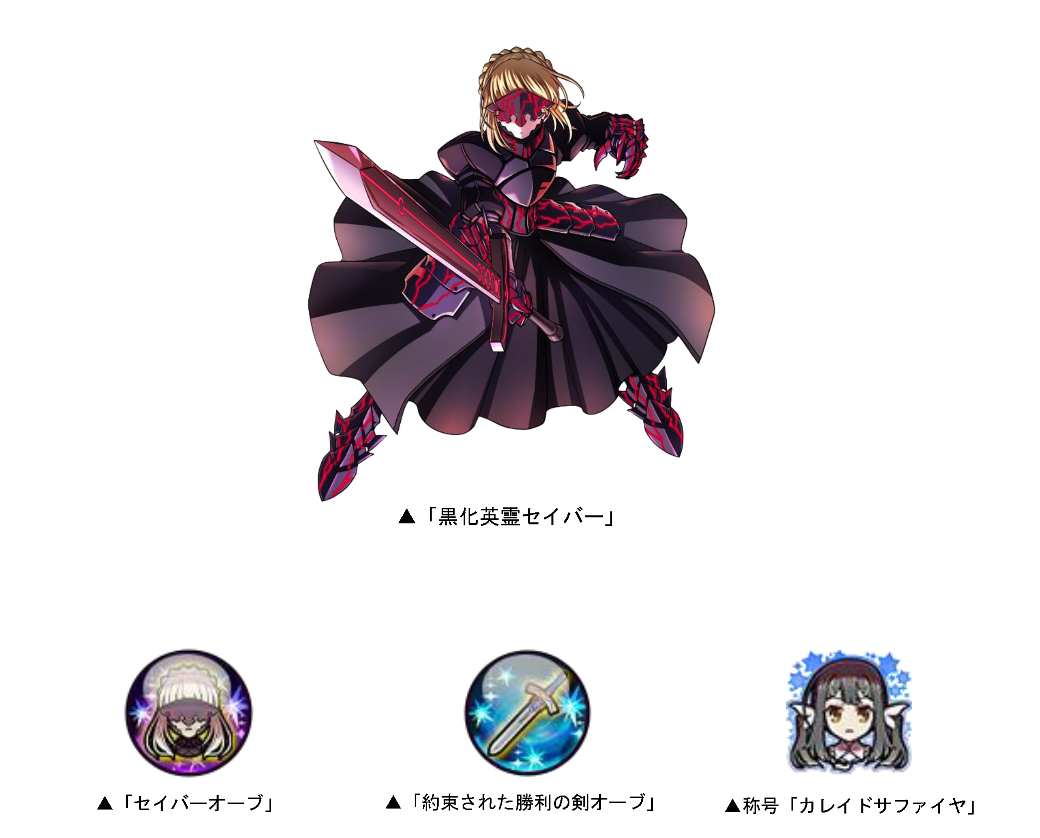 期間限定でコラボチャレンジダンジョン「空白、夜の終わり」が開催!「黒化英霊セイバー」がボスとしてプレイヤーの前に立ちはだかります。本ダンジョンをクリアすると、まれにコラボ限定オーブ「セイバーオーブ」「約束された勝利の剣オーブ」を入手することができます。さらに、規定回数クリアすると、コラボ限定称号「カレイドサファイヤ」を手に入れることが可能です。
