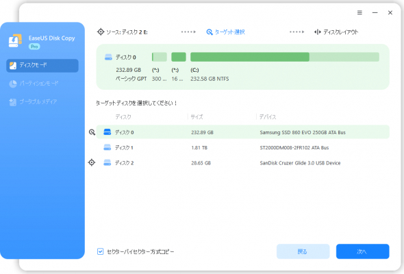 EaseUS Disk Copyでセクター単位でディスクをクローンする方法