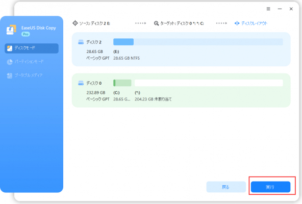 ステップ3.「実行」をクリックして、セクター単位のクローンプロセスを開始します。