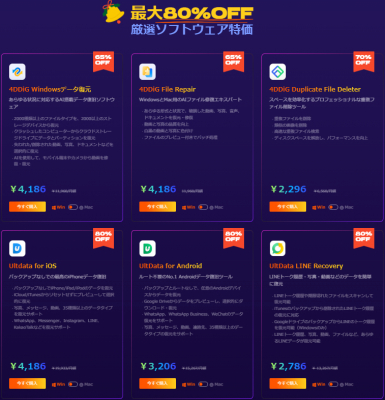 今回のセールでは、4DDiGシリーズの全製品が最大80%OFFの特別価格でご購入いただけます。誤って削除してしまった写真、動画、重要な文書など、失ってしまったデータを復元したいとお考えの方は、この機会をお見逃しなく。