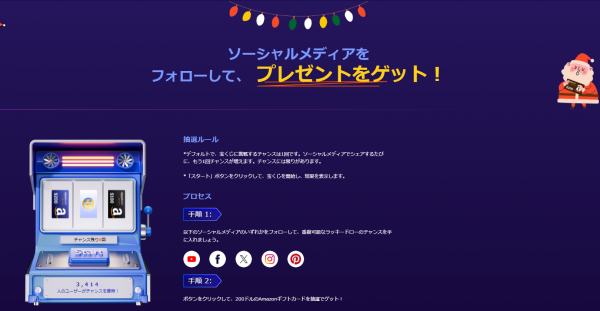● 30000円のAmazonカードをゲット:ソーシャルメディアをシェアして、抽選チャンスをゲット!
