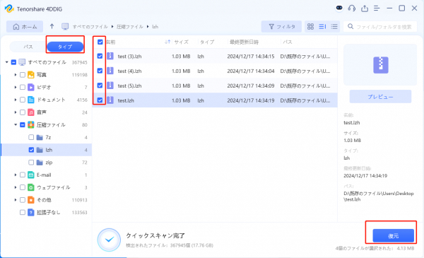 Tenorshare社が提供しているデータ復元ソフト「Tenorshare 4DDiG」最新バージョンは12月17日(火)に発表されました。新しいバージョンでは、特に、削除したlzhファイルをスキャンして復元できました。