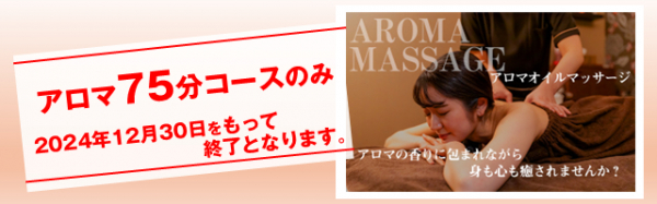 【米子両三柳店】アロマ75分終了のお知らせ!