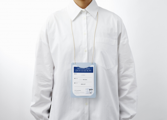 イベント会場で参加者全員に配布される吊り下げ名札。現状は耐久性のあるプラスチック製ですが、数時間~数日間使用された後、廃棄されています。また廃棄の際には紙の参加票とプラスチックの本体を分別する必要があります。そこで本体と紐に再生紙を使った紙製の名札を開発しました。
