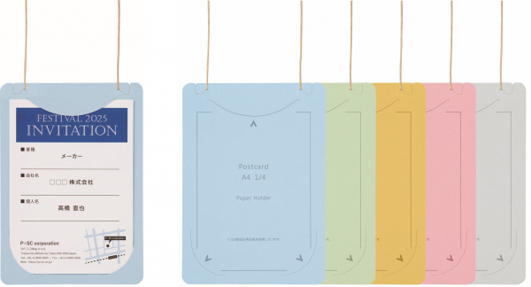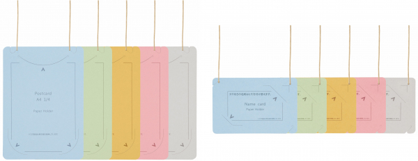 本体は、イベントテーマやブランドカラー、グループ分けなどに合わせて選べる5色展開で、再生紙を使った紐と相まって、やさしく自然な風合いがさまざまなイベントに馴染みます。メーカー希望小売価格(税込)は、「はがき/A4四折サイズ(50枚入)」が4,400円、「名刺サイズ(50枚入)」が3,850円です。
