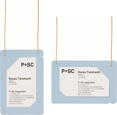 名刺サイズは紐を一カ所付け替えることで、縦型・横型どちらの名刺でもお使いいただけます。