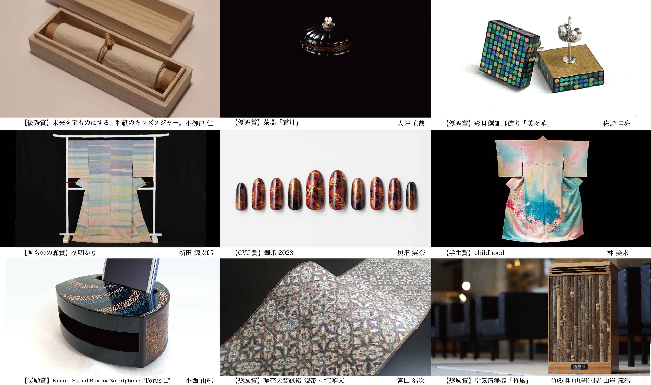 受賞者は国内においては、授賞式、交流会(協賛企業、法人会員、審査委員、理事、アドバイザー、関係各社)への参加を始め、展示販売会を順理庵 原宿本店(東京都渋谷区神宮前3-28-2 TABAYA United Arrows2F4月下旬移転OPEN予定)や、「ジャパン マスタリー コレクション」羽田空港第3ターミナル、他で開催を予定。海外にむけては、受賞作家とその作品の紹介と販売を行うWebサイト「Green Pheasant」(gp-j.com)の掲載、SNSでの発信などを行い、受賞者に対しての需要拡大につながるフォローを具体的に実施することで和文化の担い手が持続的に活動できるよう継続してサポートします。