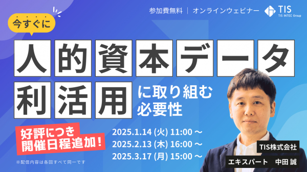 そのような課題を持つ企業に向けて、TISは人的資本を始めとするデータ利活用への取り組みをサポートしています。なぜ、今すぐに人的資本のデータ利活用に取り組む必要があるかをお伝えいたします。