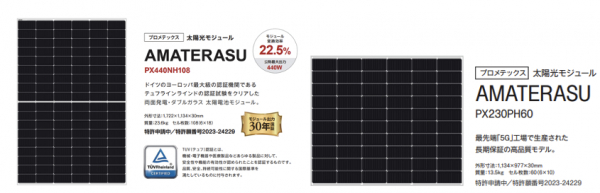 2024年12月18日、株式会社プロメテックスホールディングス(本社:愛知県名古屋市、代表取締役社長:加藤皇大、以下「弊社」)は、雪国や塩害地域、砂漠、高温多湿など多様な環境下で使用可能な耐久性と、都市部の狭小屋根にも対応した高性能でコンパクトな「グローバル基準」の最新太陽光モジュール「AMATERASU」シリーズ【PX440NH108】【PX230PH60】の販売開始を正式に発表しました。