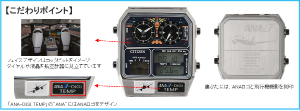 全日空商事株式会社(本社:東京都港区、代表取締役社長:宮川純一郎)は、シチズン時計株式会社(以下シチズン)で1980年代に大ヒットモデルとなった「CITIZEN ANA-DIGI TEMP」(シチズンアナデジテンプ)を、装い新たに復刻し、CITIZENとANAのコラボレーションによる限定アイテム 『CITIZEN ANA-DIGI TEMP コックピットモデル』を発売します。