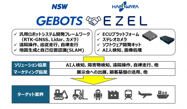 近年、産業向け走行ロボット業界における自動化・高度化と安心安全への対応が推進されています。NSWと萩原エレクトロニクスはそれぞれの強みを生かし、ソリューション/マーケティングの枠組みで新たなサービス創出と顧客開拓にチャレンジし、両社のモビリティ事業を発展させていくことを目指します。