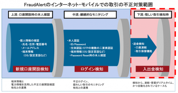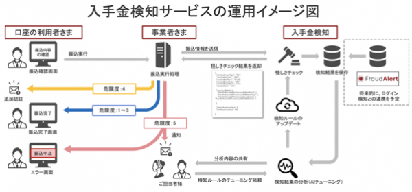 今回リリースする「Fraud Alert 入出金検知」は、入出金をリアルタイムにモニタリングするもので、転売口座やレンタル口座の検知に有効です。また、既存の「Fraud Alert」と併用することで、8月23日に警察庁・金融庁から発出された非対面チャネルのモニタリングを強化する要請「法人口座を含む預貯金口座の不正利用等防止に向けた対策の一層の強化について」のほとんどに対応することが可能になります。過去に不正利用に使われた端末情報のデータベースを有しており、不正利用に使われた端末情報や悪意のあるアクセスを、Fraud Alertユーザー企業間で共有することで、銀行、証券会社、外国為替証拠金取引業者、クレジットカード事業者、暗号資産交換業者、貸金業者などの業界をまたいだ捕捉が可能です。すでにソニー銀行様、セブン銀行様などに導入いただき、今年、年間で10億円弱の不正送金、マネーロンダリングの送金をリアルタイムに検知、遮断した実績があります。