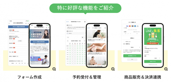 メッセージ配信・予約管理・決済など充実した機能で、導入企業様の売上アップに貢献。