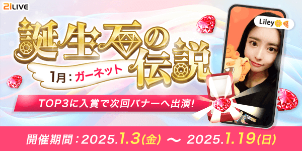 株式会社エムアンドティーティー(本社:沖縄県北谷町、代表取締役:井藤 三知子)が運営するエンターテイメント・ライブ配信アプリ【21LIVE(ニーイチライブ)】URL: https://21.live では、1月3日(金)より『誕生石の伝説』を開催します。