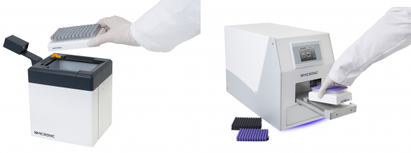 マイクロニック社は業界のリーダーとして、大量のサンプルを取り扱う科学者をサポートする自動化ソリューションを提供しています。マイクロニック社が提供するサンプル保管用のチューブおよびそれらを取り扱う機器(コードリーダー、キャッパー等)は、高い品質・信頼性・耐久性を兼ね備えています。これらの製品は、主要なオートメーションシステムに対応しており、創薬で用いられる化合物や様々な検体を効率よく間違いなく管理する目的で使用されます。