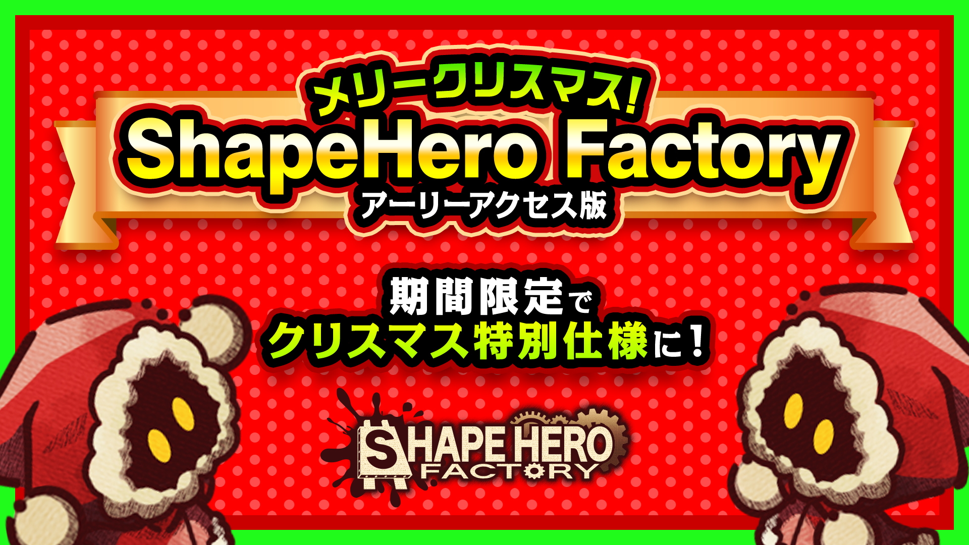 株式会社アソビズム(本社:東京都千代田区、代表取締役:大手智之)は、日本時間12月24日(火)より『ShapeHero Factory(シェイプヒーローファクトリー)』アーリーアクセス版が期間限定で特別仕様になることをお知らせいたします。
