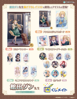景品デザインには今回の「くじメイト」のために、館田ダン先生に描き下ろしていただいた新規イラストも登場!