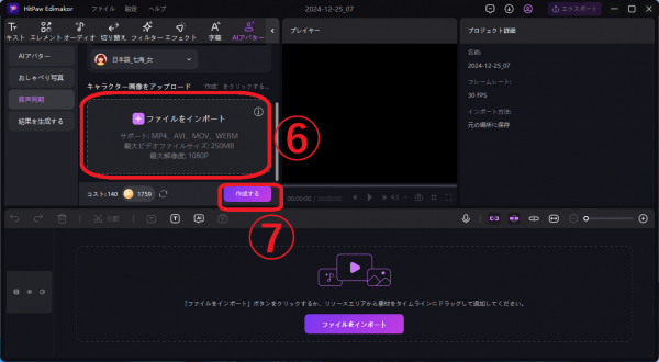 下にスクロールして「ファイルをインポート」部を表示させ、素材動画をドラッグ&ドロップします。そして「作成する」をクリック。口パク動画生成処理が始まります。