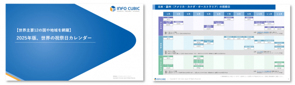 海外デジタルマーケティングの総合支援を行い1,300社以上の支援実績を持つ、株式会社インフォキュービック・ジャパン(本社:東京都新宿区、代表取締役 梅川万穂)は、令和7年1月8日(水)に 『 2025年版 世界の祝祭日カレンダー 』 と題した無料のホワイトペーパーを公開しました。
