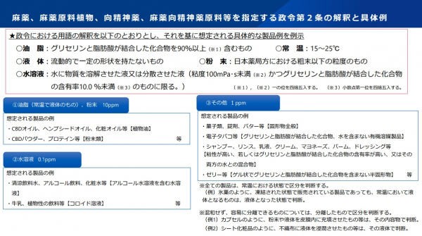 図 12月12日に施行したCBD製品等のTHC残留限度値の具体例