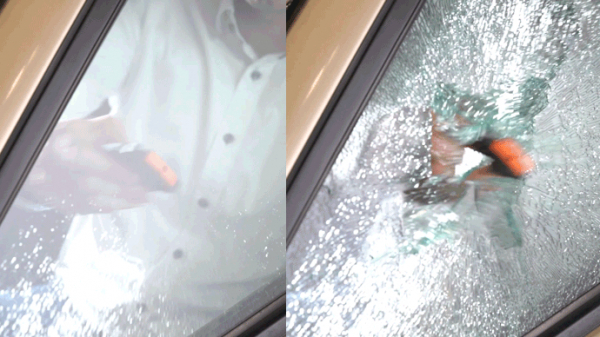 特許取得済みの刃を内蔵し、サイドウィンドウを一撃で破砕。水圧や衝撃で開かないドアに対応。