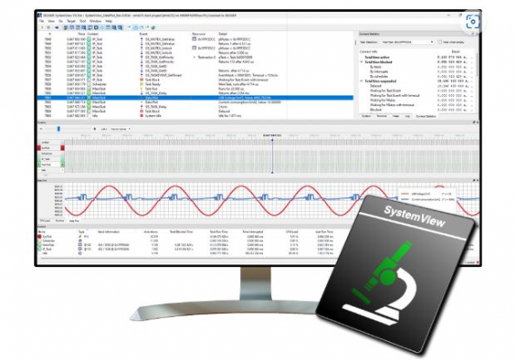SystemViewを使用して、アプリケーションの動作をリアルタイムで解析します。タスク実行のタイミング、メモリ使用量、CPU負荷を詳細に分析し、問題を特定します。