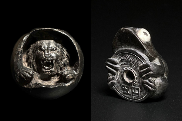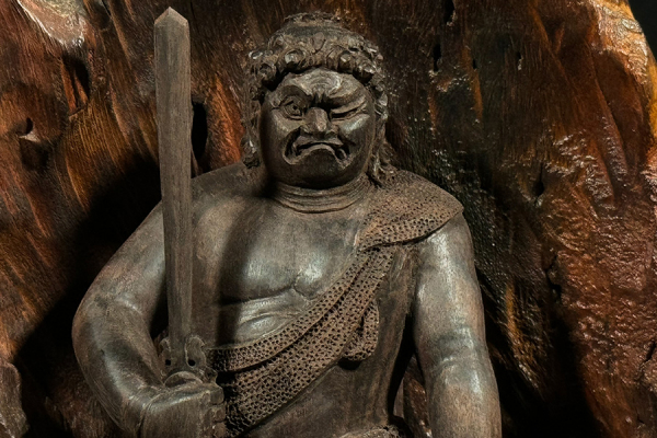 非常に硬く重いため彫刻には不向きとされている黒檀。その硬さを活かす事で緻密で繊細な彫りや重厚で大胆な彫りから生み出された毘沙門天や不動明王、七福神や根付けなど揃います。