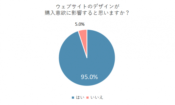 「ウェブサイトのデザインが購入意欲に影響すると思いますか?」の質問に対し、95%もの人が「はい」と回答しました。ウェブサイトのデザインは、消費者の購入意欲に大きく影響することが明らかになりました。