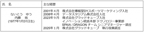 株式会社グラッドキューブ(本社:大阪市中央区 代表取締役 CEO 金島 弘樹 以下:グラッドキューブ)は、2025年1月4日(土)付けで、下記のとおり執行役員人事を決定しましたので、お知らせいたします。