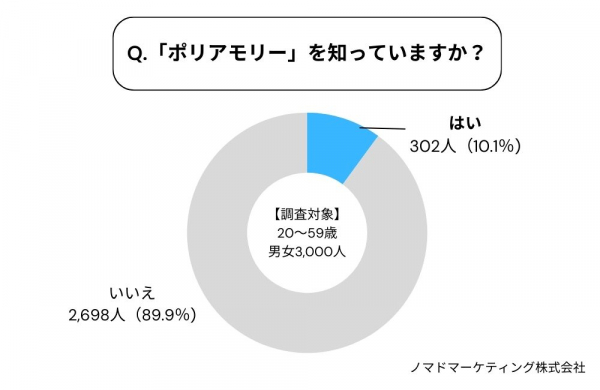 既婚者向けマッチングアプリ「既婚者クラブ」のユーザーを対象にノマドマーケティング株式会社(東京都渋谷区)が、20歳~59歳までの男女3,000人を対象に「ポリアモリーに関する意識調査」を実施しました。