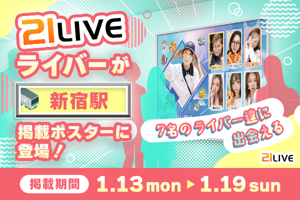 1月13日(月)より1週間限定で、新宿駅構内に21LIVEのポスターを掲示します。
