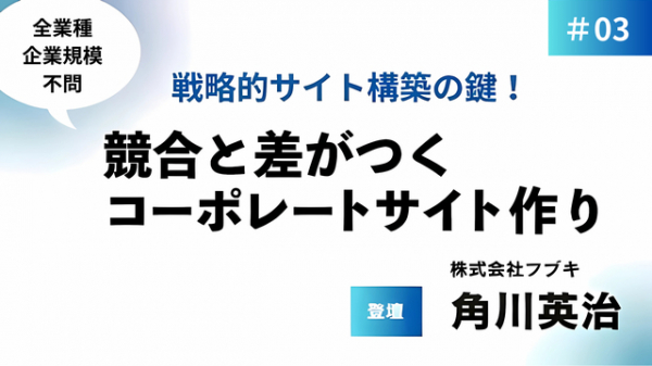 本セミナーでは、株式会社フブキ代表取締役 角川英治氏をお招きし、1999年創業のWeb制作会社としての豊富な実績をもとに、競合と差別化するための具体的な手法や、自社価値を最大化するPR戦略、ブランディング方法を実践的にお伝えします。
