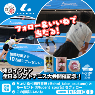 またSNSでも開催を記念して、1月8日より「東京インドア全日本ソフトテニス大会開催記念」キャンペーンを開始しました。