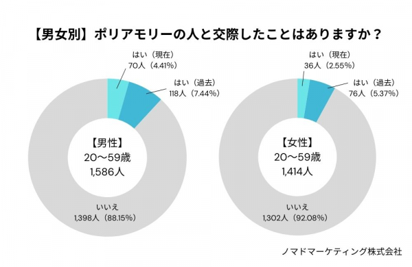 既婚者向けマッチングアプリ「既婚者クラブ」のユーザーを対象にノマドマーケティング株式会社(東京都渋谷区)が、20歳~59歳までの男女3,000人を対象に「ポリアモリーに関する意識調査」を実施しました。