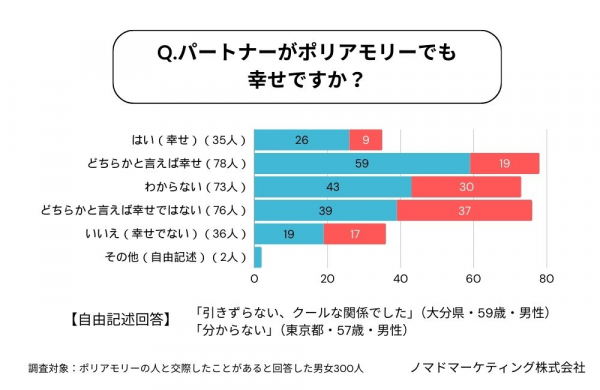 最後に、パートナーがポリアモリーという特殊な恋愛スタイルを取っている場合でも、幸せと感じるかどうかを聞きました。