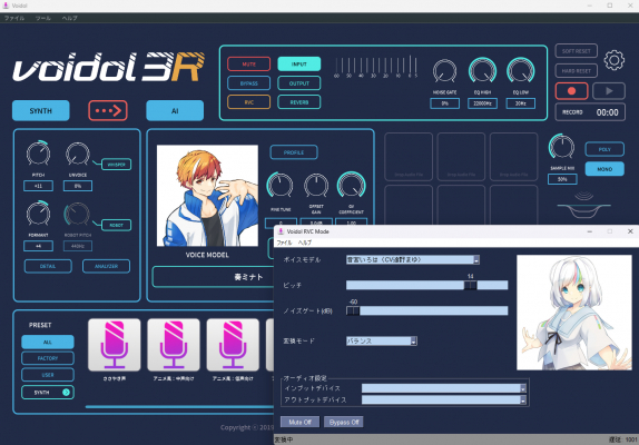 Voidol3では自身の声を特定のキャラクターの声に変換するAIリアルタイム声質変換(AIモード)とシンセサイジングによる超高速声質変換エンジン(SYNTHモード)の双方向の連結を実現。