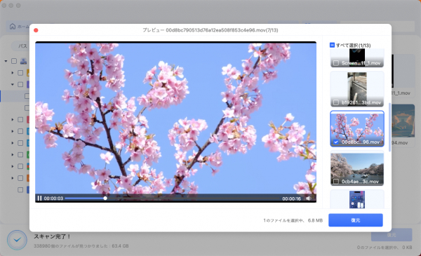 深層スキャン機能により、完全に削除されたファイルも発見できる。