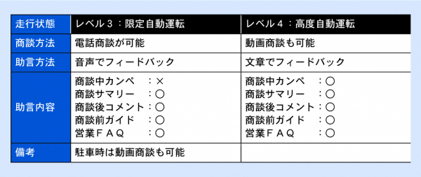 以上。念を押せば、レベル3では商談中カンペを除き、そして駐車時を除き、すべての助言や指摘は音声フィードバックになります。