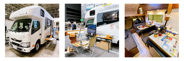 JAPAN C.R.C.のブースでは、キャンピングカー「ロビンソン771」の展示とともに、国内最大級のゲレ