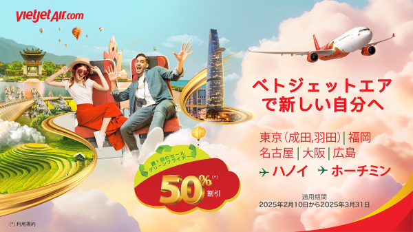 (東京, 2025年1月17日) - ベトジェットは2025年の幕開けを記念して、毎週金曜日に日本とベトナムを結ぶ8つの路線を含む国際線の運賃が50%割引になるチケットプロモーションを実施し、日本人旅行者の皆様にベトナムの魅力をお手頃価格で満喫できる機会をご提供します。