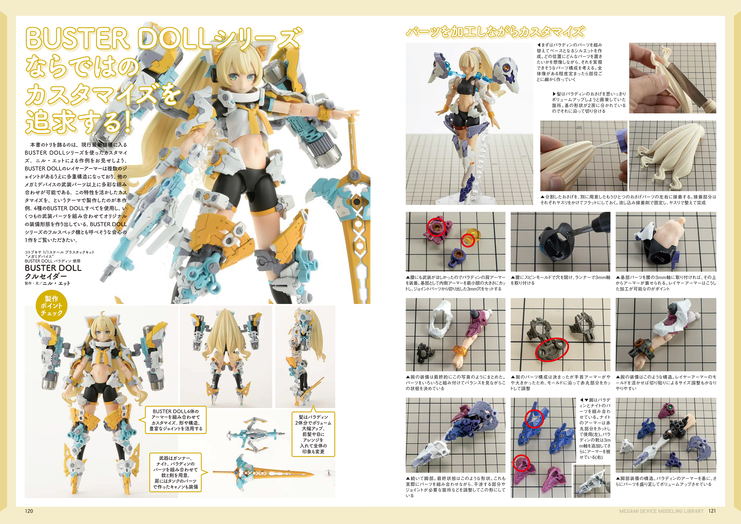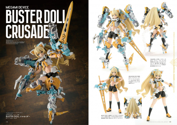 「メガミデバイス」のHow toを交えた作例4体をはじめ、合計20体以上の作例を収録します。新素体「Block2」シリーズの最新キット作例もたっぷり登場。新規作例ではさまざまな製作テーマを設け、オリジナル作品を作るためのテクニックをご紹介します。各メガミの設定・キット解説も掲載。また付録として、「BUSTER DOLL ガンナー/タンク」に対応する瞳デカールが付属します!