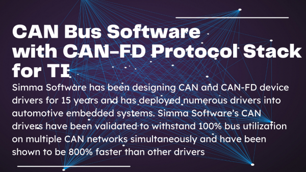 2025年2月4日、東京都渋谷区 ポジティブワン株式会社(米国インディアナ州に本社が置くシンマソフトウェア(Simma Software, Inc.)日本総代理店)は、Texas Instruments(TI)の多様なマイクロコントローラ(MCU)およびプロセッサに対応した高速なCANおよびCAN-FDデバイスドライバおよびCAN-FDプロトコルスタックのソースコードの販売を開始いたします。
