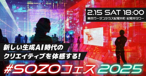生成AI技術を活用した教育やアート分野での事業を展開する、株式会社海馬(本社:東京都港区、代表取締役 CEO 北村勝利)は、2025年2月15日(土)、生成AI時代の最新クリエイティブが集結するイベント「#SOZOフェス2025」を開催いたします。「生成AI」「未来のビジネス」「クリエイティブ」の融合をテーマに、生成AIを活用した画像、動画、サービス、事業、プロダクトなど多様な作品が一堂に会する展示イベントです。
