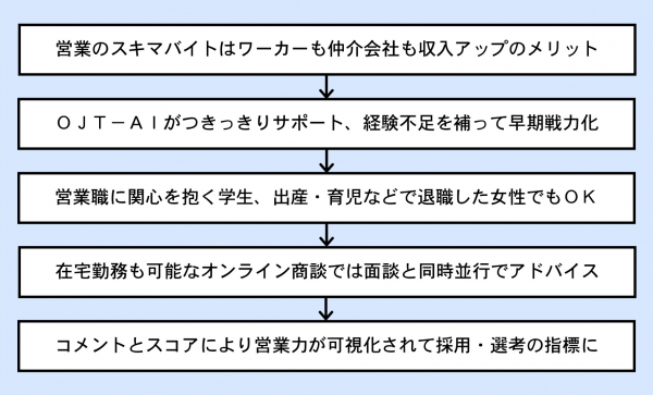 OJT-AIによる「スキマ営業」の利用は多様な業種の雇用者にとって有効です。